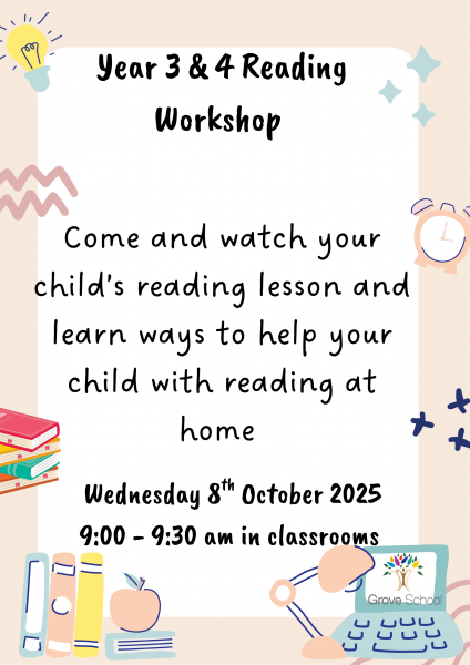 Year 3 & 4 Reading Workshop in classrooms from 9:00am